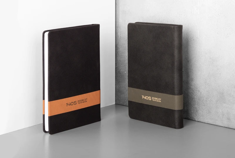سالنامه روز شمار طرح نوین: طراحی مدرن با جلد دو تیکه چرم، گزینهای متعادل برای برنامهریزی حرفهای روزانه و استفاده روزمره.