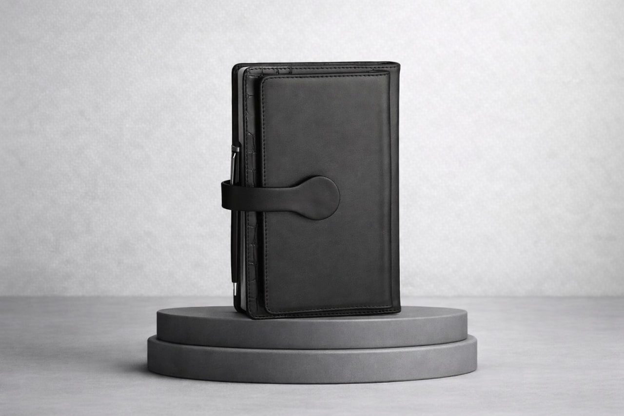 سالنامه روز شمار طرح نوین: مدلی مدرن با جلد دو تیکه چرم، مناسب افرادی که تعادل بین زیبایی و عملکرد حرفهای میخواهند.